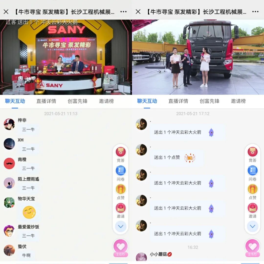 來自三一重工的產(chǎn)品研發(fā)經(jīng)理為觀眾詳細(xì)介紹了泵送、路機(jī)王牌產(chǎn)品,通過尋寶的方式,趣味多多,令觀眾大呼過癮。更有多輪紅包雨、知識搶答等互動環(huán)節(jié)為大家送上泵車模型、遙控攪拌車模型等好禮。