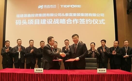 泰富重裝集團與福建源鑫投資集團在泰富湖南九華工業(yè)園簽署了碼頭項目建設戰(zhàn)略合作協(xié)議。泰富重裝集團董事長張勇、源鑫投資集團董事長陳必松分別代表雙方簽字,雙方企業(yè)高管、源鑫學院學員代表等百余位成員共同見證了這一重要時刻。