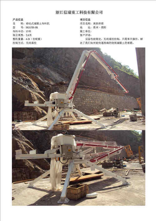 歸屬行業(yè):信瑞重工HG15D-3R車架式混凝土液壓布料機(jī)