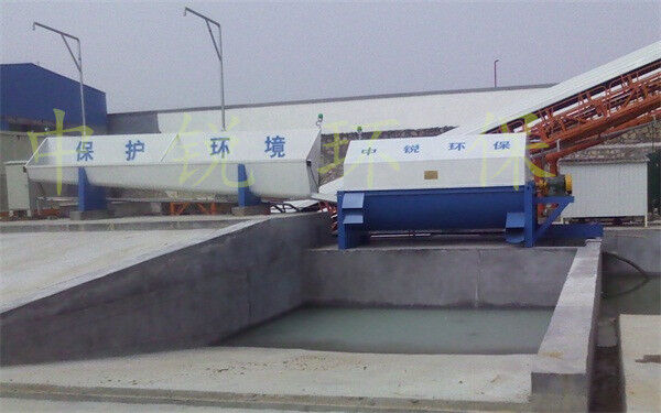 該系統(tǒng)主要由:攪拌車加水清洗裝置,溜槽輸送裝置,砂石漿水分離裝置,和泥漿水后處理裝置組成?;炷凛斔驮O(shè)備清洗后,將殘余混凝土排入溜槽中,在高壓水流沖擊下,經(jīng)溜槽進(jìn)入砂石分離機(jī),在不斷旋轉(zhuǎn)的分離機(jī)作用下,對(duì)混凝土進(jìn)行充分的清洗,同時(shí)將砂、石進(jìn)行分離,分離后的砂、石在導(dǎo)料葉片的作用下背向流動(dòng),再通過提升式出料口排出分離機(jī),分別堆放。清洗后的漿水從分離機(jī)的底部排出進(jìn)入沉淀池逐級(jí)沉淀后循環(huán)使用或進(jìn)入攪拌池回收利用。進(jìn)入攪拌池(一般情況2個(gè)攪拌池)的漿水為了防止沉淀凝固,需通過攪拌器的作用,攪拌器的工作為間歇式。分離出水泥漿在連續(xù)的攪拌器作用下,再通過高壓污水泵輸送到攪拌樓中待生產(chǎn)計(jì)量再利用。整個(gè)控制系統(tǒng)設(shè)有手動(dòng)和自動(dòng)控制,方便控制設(shè)置,整個(gè)系統(tǒng)運(yùn)行可靠,故障率低,維護(hù)量少等特點(diǎn)。