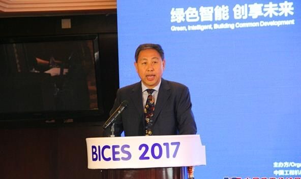中國工程機械工業(yè)協(xié)會常務(wù)副會長兼秘書長蘇子孟做BICES 2017展會倒計時100天主題發(fā)言。