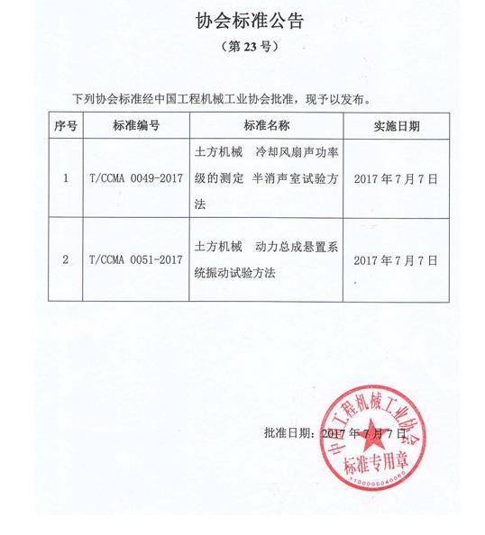 【協(xié)會】中國工程機械工業(yè)協(xié)會標準公告(第23號)